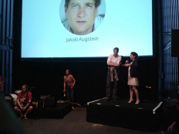Dieser Eindruck hat sich für mich auf der gestrigen Veranstaltung in der Platoon Kunsthalle noch einmal bestätigt. Die Leute kamen, um Cocktailglas schwingend neue Kontakte zu knüpfen. Dagegen ist ja erstmal nichts zu sagen, nur fehlte der ganzen Veranstaltung total die Richtung. Die Reporter sprachen nicht von ihren Visionen, überhaupt gab es neben der Ska-Band Rupert’s Kitchen Orchestra und fünf Minuten Andrea Hanna Hünniger und Jakob Augstein kaum Programm. Das fand ich etwas enttäuschend. Die Gäste stürmten wegen der Hitze nach draußen. Augstein nahm den Hinterausgang und verschwand. Das Publikum halbierte sich, wahrscheinlich waren viele nur wegen ihm gekommen.
